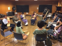 今回のワークショップは、ライブ演奏を聴くだけではなく、参加者が一人一台のゆう琴を持って音を響かせ、声を出し、みんなで合奏もするといった、体験型・参加型のイベントとなりました。